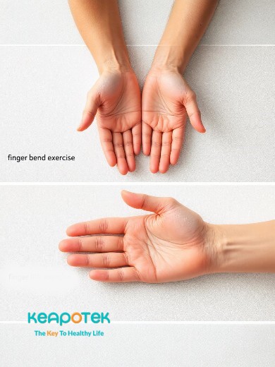 · Tekuk Jari: Rentangkan tangan ke depan anda dengan telapak tangan menghadap ke atas. Ambil setiap jari dan gerakan perlahan ke arah tengah telapak tangan. Tahan selama beberapa detik, luruskan lalu ulangi.· Angkat jari: Letakkan telapak tangan anda pada permukaan datar dan angkat masing-masing jari satu per satu beraturan. Ulangi pada kedua tangan.· Geser jari: Letakkan telapak tangan anda pada permukaan datar dengan jari terentang. Geser jari-jari anda mengarah ke arah ibu jari, satu per satu.· Genggaman “C” atau “O”: Gerakan jari anda seperti ingin mengambil bola kecil membentuk huruf “C” atau “O”. Kencangkan otot dan tahan. Luruskan jari anda kemudian ulangi.· Kepalan tangan: Buka tangan anda, telapak tangan mengarah ke atas, dan perlahan kepalkan tangan anda, jaga ibu jari anda tetap berada di luar tangan. Lepaskan dan ulangi.· Tekuk ibu jari: Tekuk ibu jari mengarah ke telapak tangan semampu anda. Tahan dan ulangi.· Angkat ibu jari: Letakkan tangan anda di atas meja dengan jari kelingking menghadap ke atas. Angkat ibu jari anda menjadi tanda acungkan jempol. Turunkan ibu jari dan ulangi.· Tekuk pergelangan tangan: Ulurkan tangan anda dengan telapak tangan menghadap ke bawah. Ambil tangan yang lain dan tekan punggung tangan ke bawah mengarah ke lantai, tekuk pergelangan tangan. Tahan dan lepaskan.