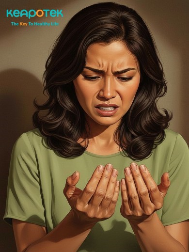 iritasi kulit yang sering ditutupi oleh sisik putih yang mengelupas. Pada 85%