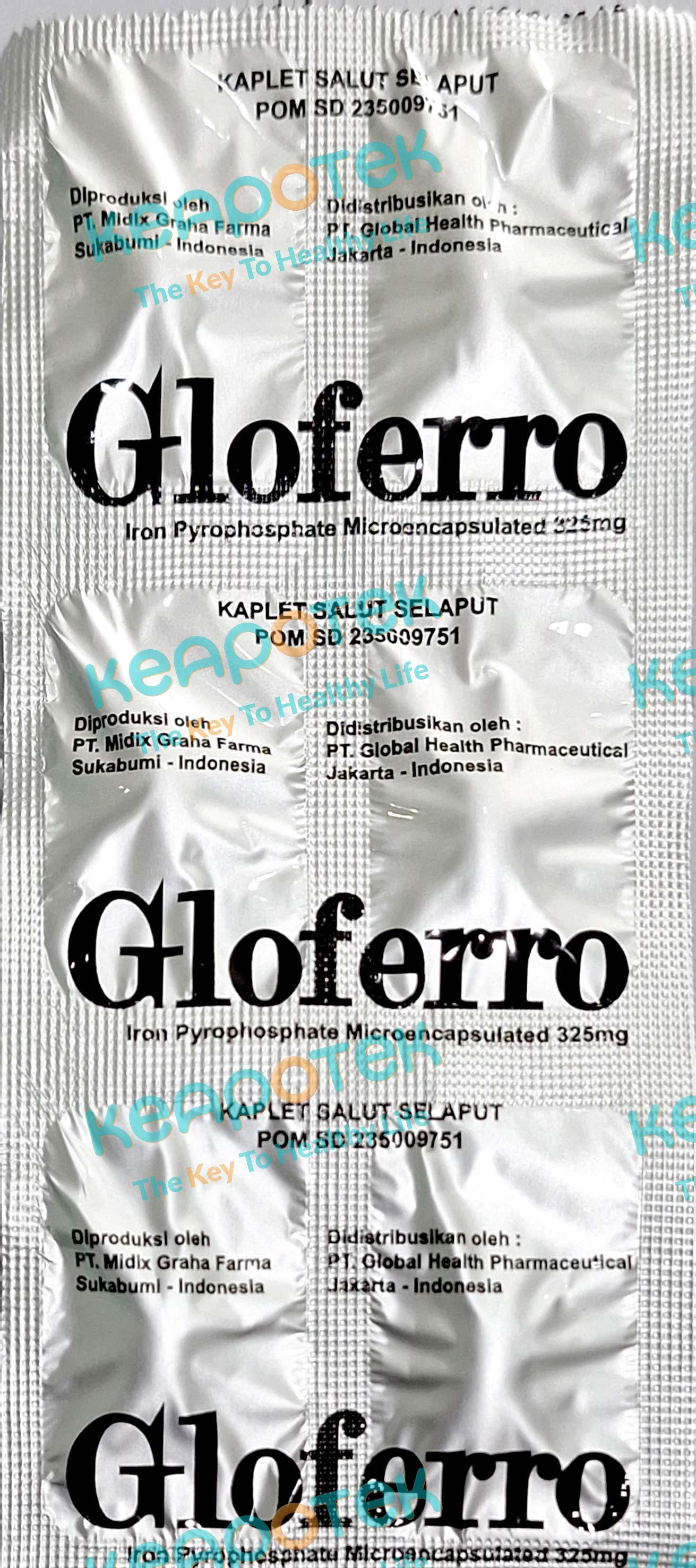 Gloferro adalah suplemen zat besi yang mengandung iron pyrophosphate microencapsulated 325 mg. Suplemen ini penting dalam pembentukan hemoglobin atau sel darah merah.
