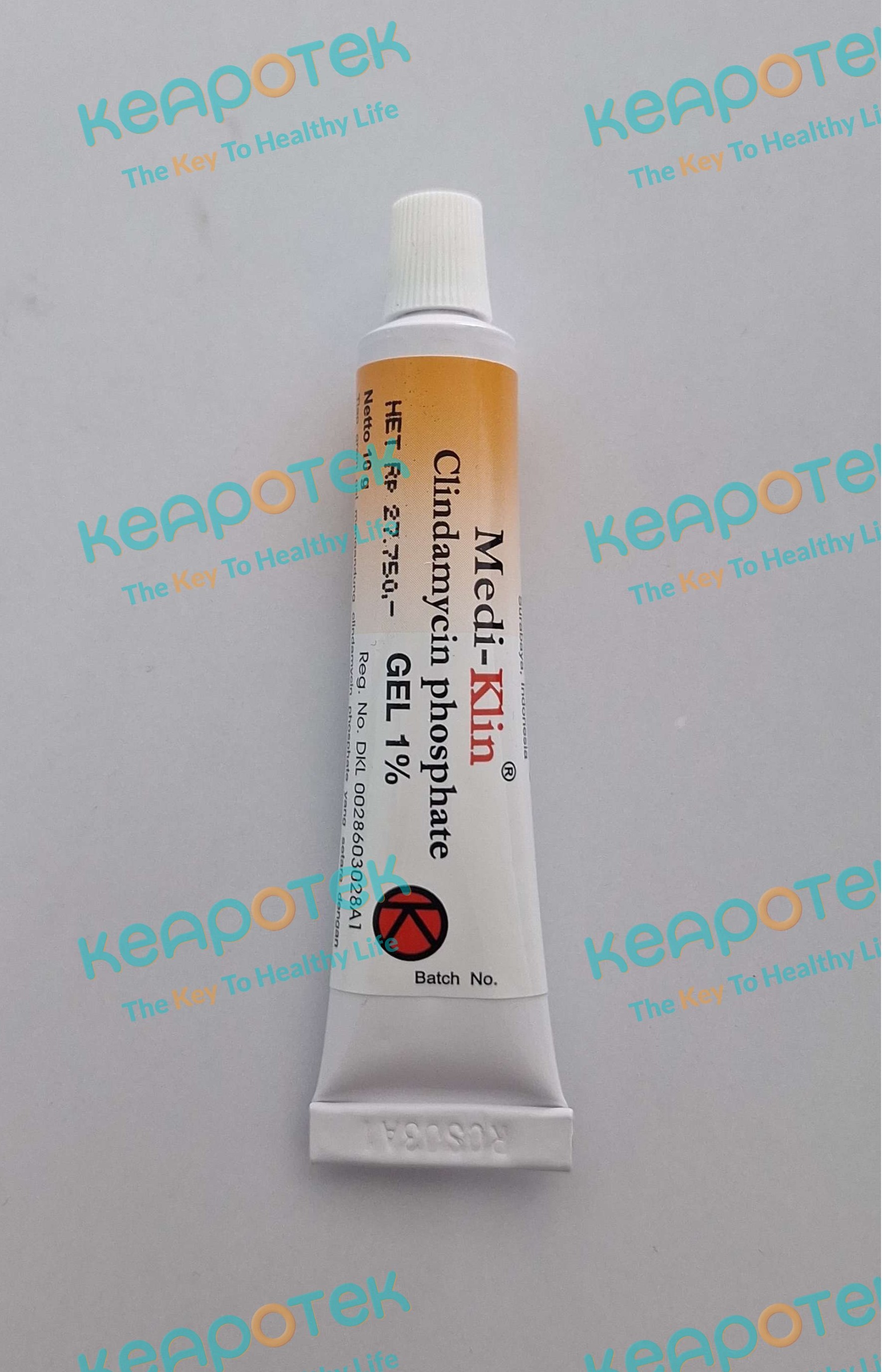 Medi-klin Gel merupakan gel dengan kandungan Clindamycin phosphate yang digunakan untuk mengatasi jerawat yang disebabkan oleh acne vulgaris.