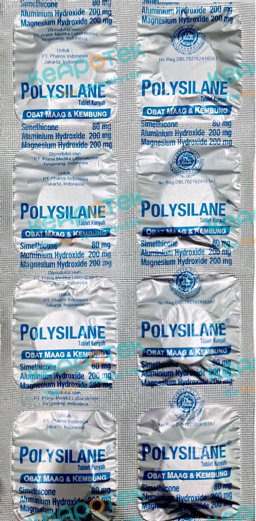 Polysilane tablet adalah obat antasida berbentuk tablet kunyah yang digunakan untuk mengatasi gangguan