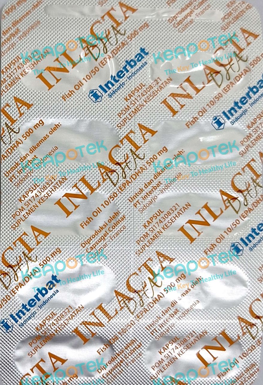 Inlacta DHA Kapsul merupakan suplemen dengan kandungan Minyak ikan, Eicosapentaenoic acid (EPA), Docosahexaenoic acid (DHA) dan Vitamin E yang digunakan untuk membantu memelihara kesehatan ibu hamil dan menyusui.