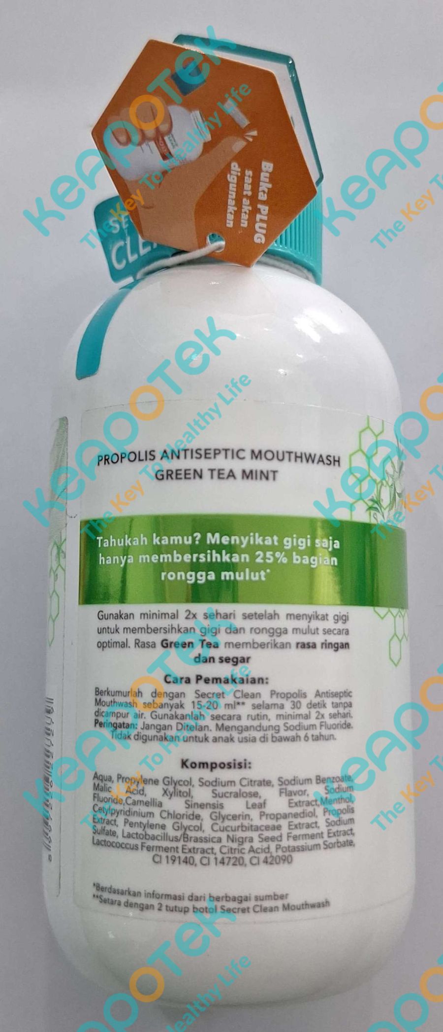 Propolis Green Tea merupakan obat kumur antiseptik dengan kandungan probiotic dan fluoride yang membantu dalam menjaga kesehatan gigi dan rongga mulut serta mengandung natural antibacterial yang melindungi dari gangguan bakteri penyebab masalah mulut.