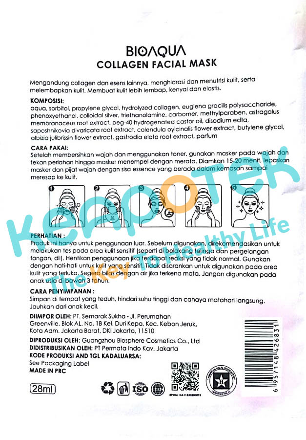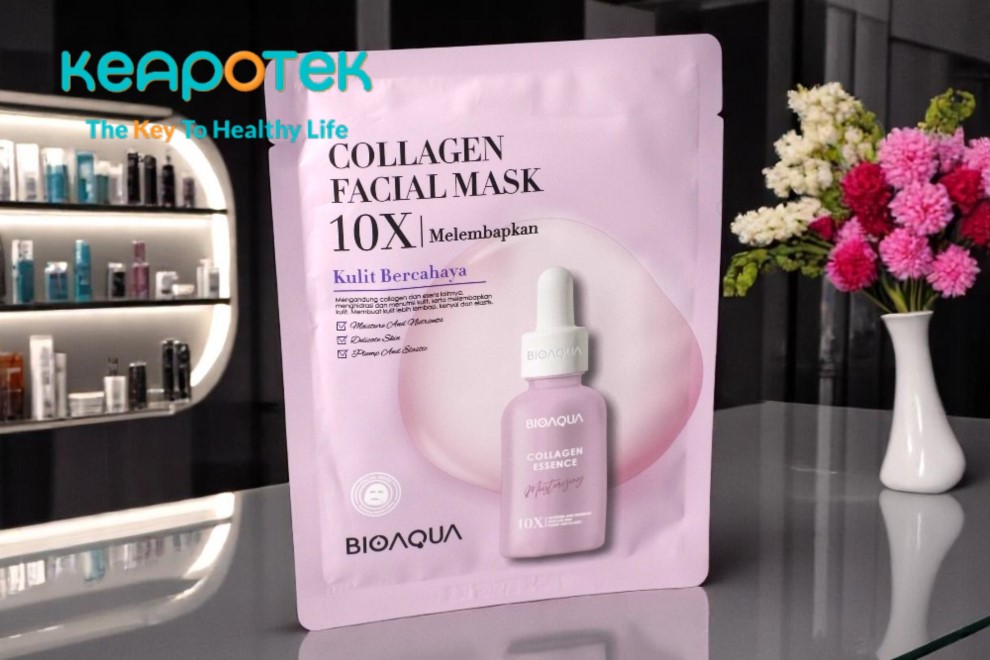 Bioaqua Collagen Facial Mask 10X merupakan sheet mask dengan kandungan kolagen terhidrolisis yang berfungsi memperbaiki kulit kusam, anti-aging dan kandungan ekstrak akar Astragalus membranaceus yang meningkatkan kemampuan perbaikan kulit dan anti-oksidan