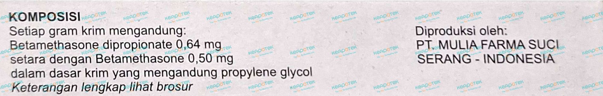 Betamethasone dipropionate 5 gram merupakan krim topikal yang mengandung kortikosteroid kuat yang digunakan untuk mengatasi peradangan dan gatal pada berbagai kondisi kulit seperti eksim, dermatitis, dan psoriasis.