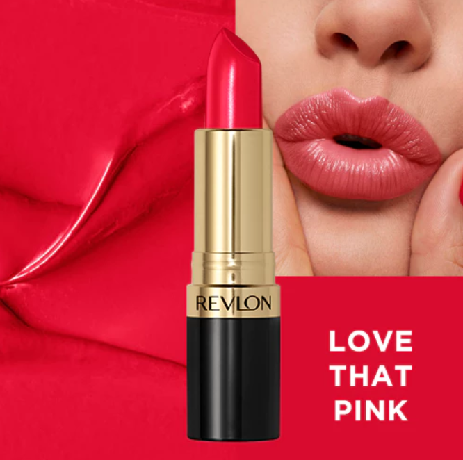 Revlon lipstick merupakan lipstick dengan beragam koleksi warna dan finish yang berbeda. Memberikan hasil satin, kaya warna dan tekstur halus pada bibir. Diperkaya dengan vitamin dan formula "Silk Enriched Moisturizer" memberikan kelembapan pada bibir sehingga bibir tidak kering saat menggunakan Revlon lipstick. Tersedia dalam pilihan warna Pink Velvet (423), Pink In The A (415), Cherries In The Snow (440), Outstanding Pink (433), Love is On (745), Sandalwood Beige (240), Fiery Sunset (005), Mauve It Over (003), Full Bloom Fusch (006), Crushed Rubies (017).