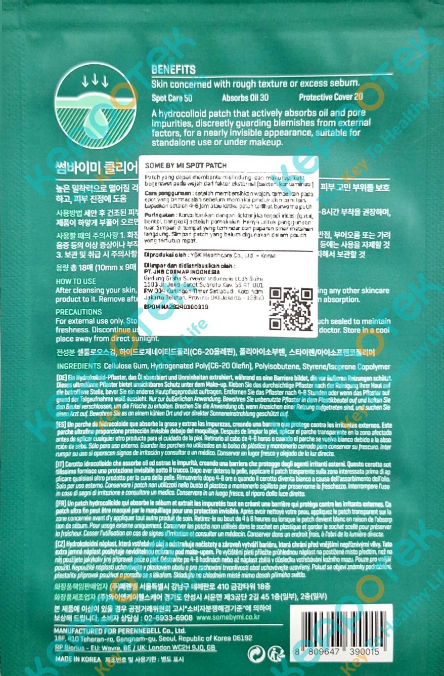 Some By Mi Clear Spot Patch merupakan patch jerawat tipe quasi-hydrocolloid yang umumnya terbuat dari gelatin, pectin dan sodium carboxymethylcellulose dimana bahan-bahan tersebut tidak mengiritasi dan aman untuk sebagian besar jenis kulit. Some By Mi Clear Spot Patch digunakan untuk melindungi jerawat dan mencegah infeksi sekunder pada jerawat.