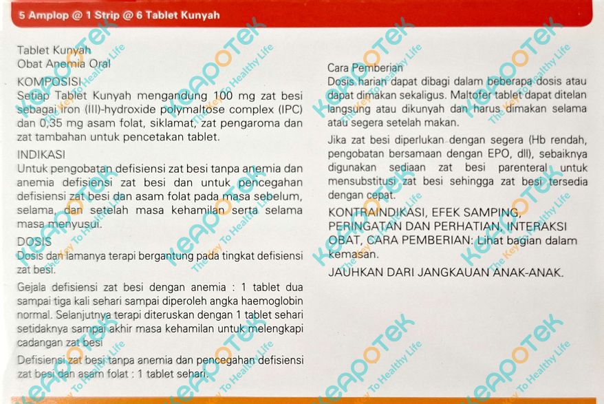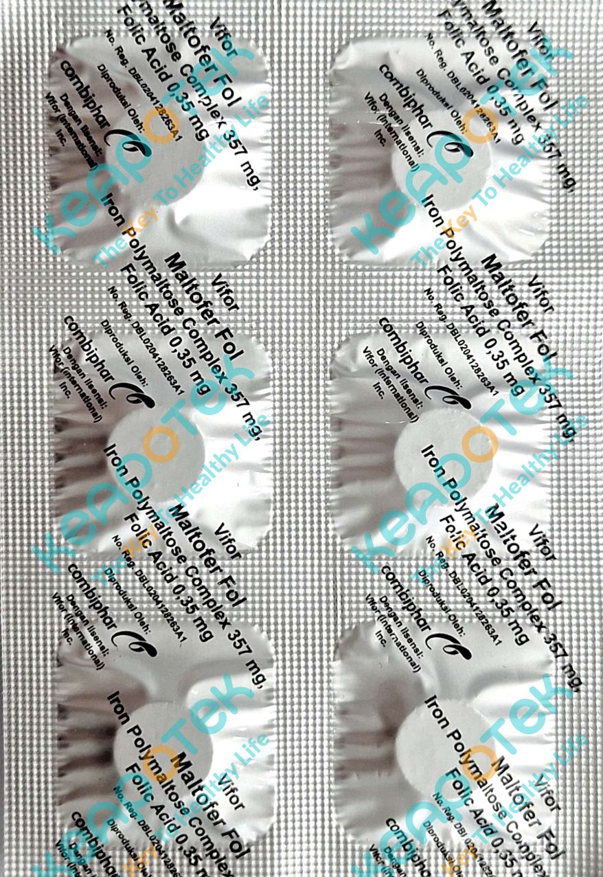 Maltofer Fol merupakan suplemen dengan kandungan Zat besi Iron Polymaltose Complex 100 mg dan asam folat 0,35 mg yang digunakan untuk mengatasi kekurangan zat besi dan asam folat sebelum, selama, dan sesudah kehamilan (masa menyusui)