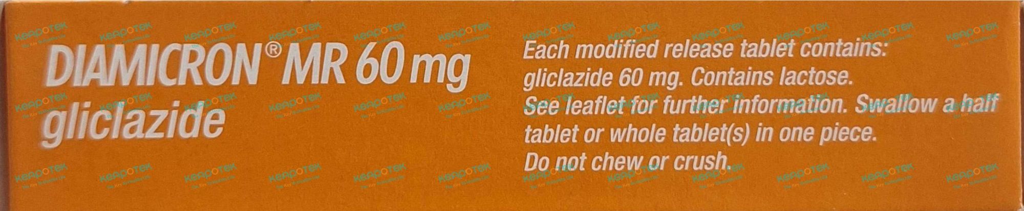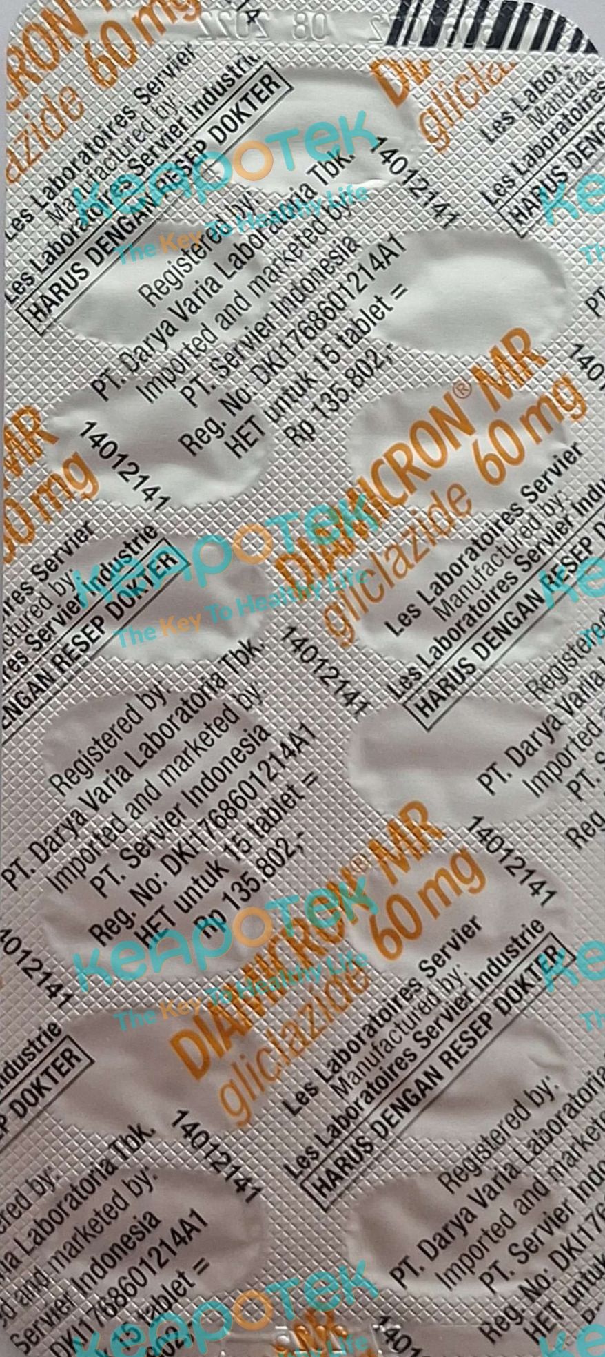 Diamicron MR adalah tablet dengan kandungan zat aktif Gliclazide 60mg. Obat ini digunakan untuk penyakit diabetes tipe 2 pada dewasa jika olahraga atau latihan fisik, diet dan upaya penurunan berat badan saja tidak dapat mengendalikan kadar glukosa darah.