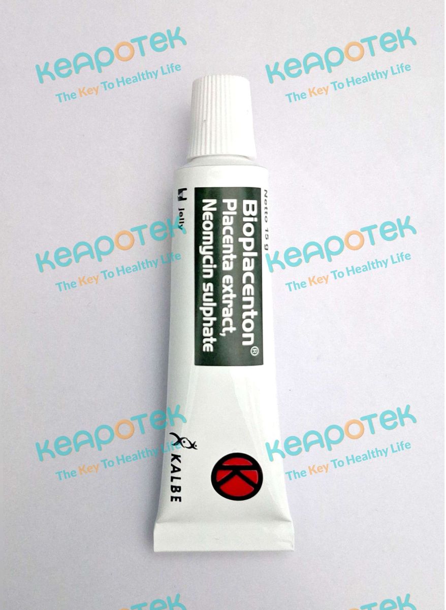 Bioplacenton memiliki kandungan Placenta Extract dan Neomycin Sulfate. Obat ini digunakan untuk mengobati luka bakar, luka dengan infeksi, serta luka kronik dan jenis luka yang lain. Neomycin sulfate merupakan antibiotik topikal terhadap banyaknya strain bakteri Gram positif dan Gram negatif.