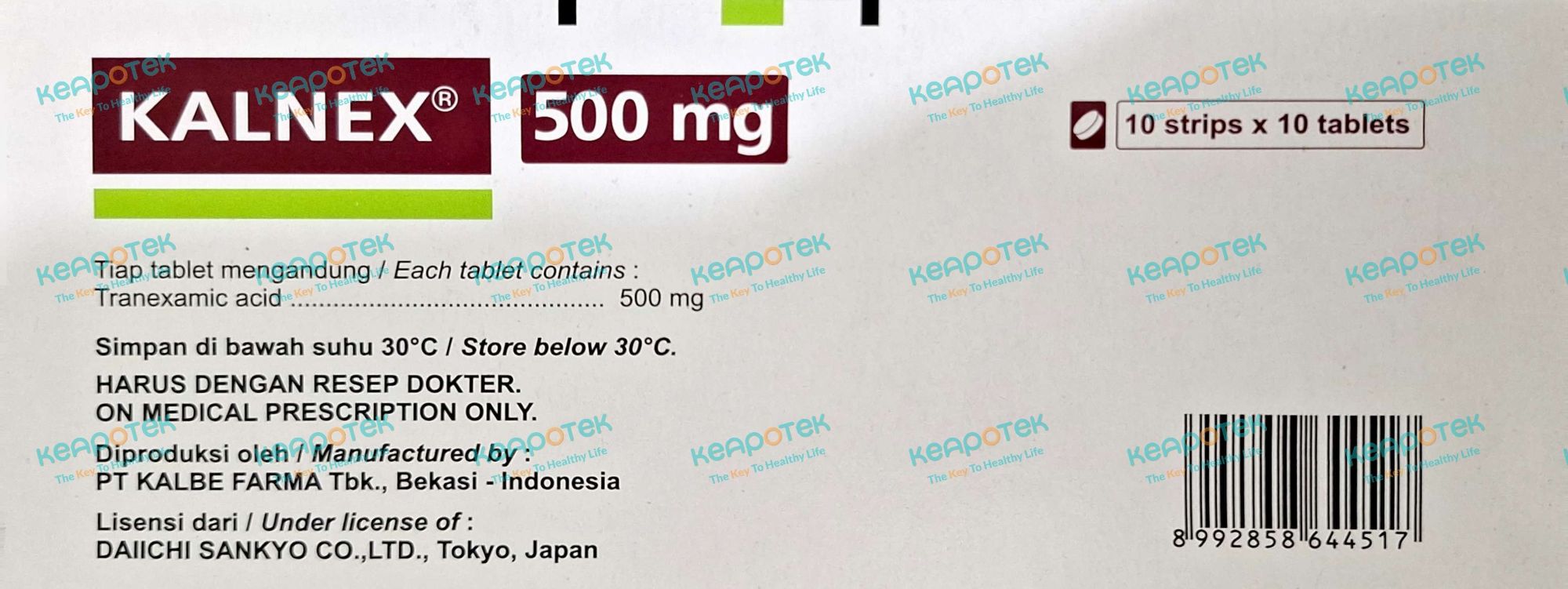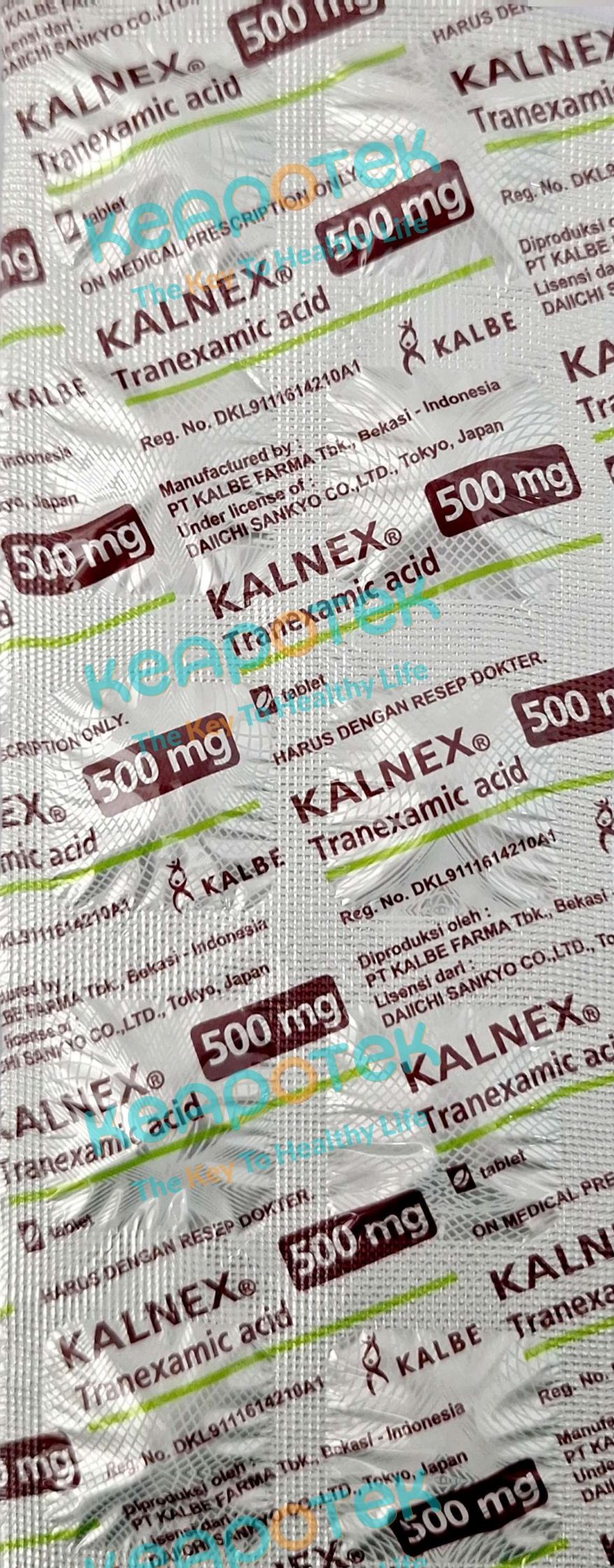 Kalnex 500 mg adalah obat dengan kandungan Tranexamic acid yang merupakan agen antifibrinolitik yang menghambat pemecahan bekuan fibrin. Tranexamic acid digunakan untuk mengatasi hemoragi, perdarahan menstruasi yang berlebihan, angiodema herediter, dan pasien hemofili yang sedang menjalani ekstraksi gigi.