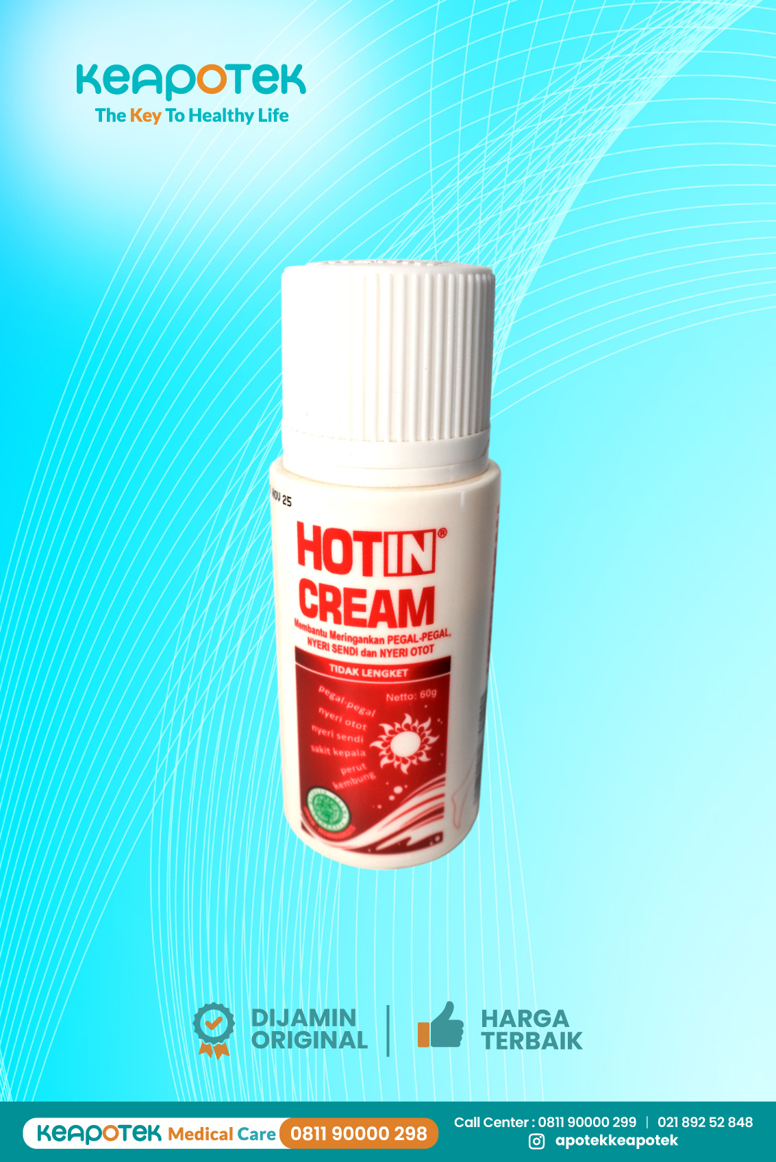 Hot In Cream dipercaya bermanfaat untuk membantu meringankan pegal-pegal, nyeri otot, nyeri sendi dan pegal-pegal. Hot In Cream mengandung metil salisilat, menthol, dan pine oil. Kombinasi bahan ini bekerja dengan cara memberikan sensasi hangat pada kulit, sehingga rasa sakit di area tersebut bisa teralihkan. Hot In Cream memiliki panas yang pas, mudah meresap, dan tidak lengket di kulit.