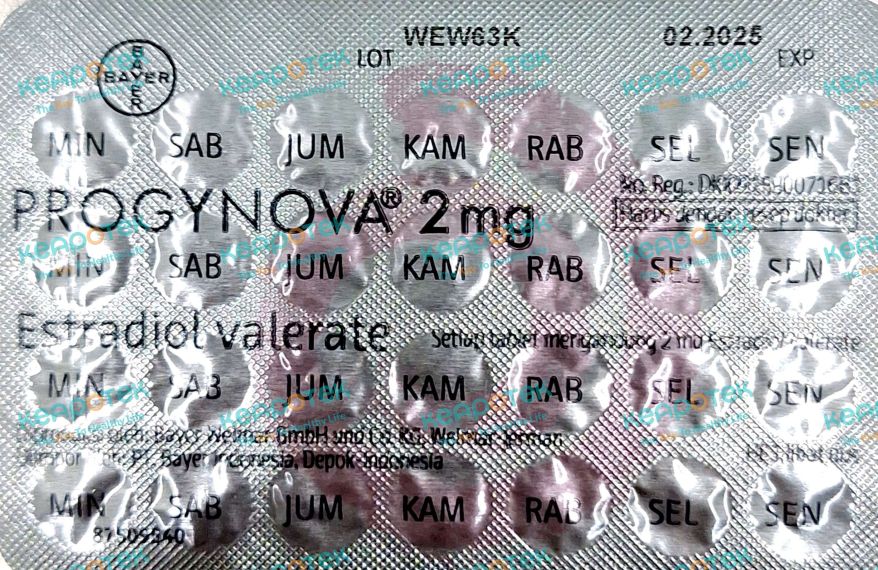 Progynova 2 mg 28 Tablet merupakan obat yang digunakan sebagai persiapan terapi pengganti hormon untuk pasien dengan kekurangan estrogen akibat menopause alami atau kastrasi. Setiap tablet memiliki kandungan estradiol valerate 2 mg yang merupakan estrogen sintetis yang berfungsi menggantikan estrogen alami yang produksinya turun dalam tubuh. Terapi sulih hormon pada tanda atau gejala kekurangan estrogen akibat menopause alami.