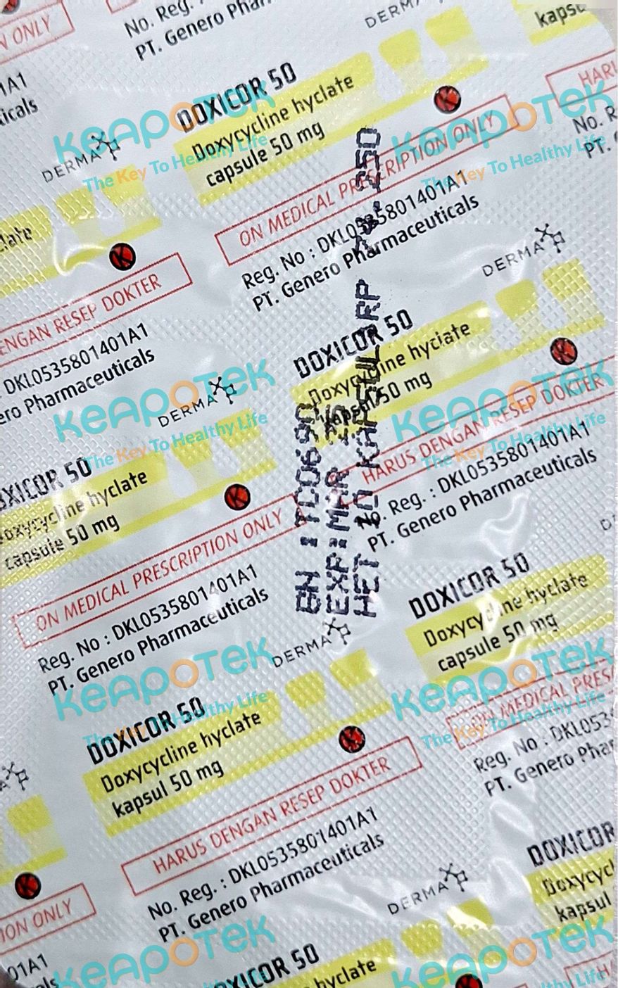 Doxicor merupakan obat yang mengandung Doxycycline yang digunakan untuk mengobati infeksi bakteri pada saluran pernapasan, bronkhitis dan sinusitis kronis, infeksi bakteri pada saluran kemih, infeksi kulit akibat acne vulgaris, penyakit menular seksual, pengobatan alternatif gonore dan sifilis, infeksi rickettsia, infeksi mata yang disebabkan oleh bakteri. Doxycycline memiliki efek antimikroba yang menghambat sintesis protein subunit ribosom bakteri-30s. Doxycycline aktif melawan mikroorganisme gram positif dan gram negatif spektrum luas.