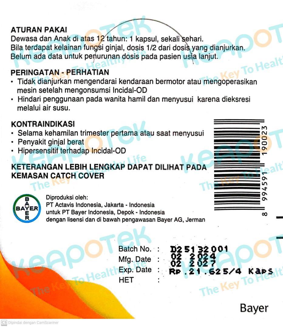 Tidak digunakan pada penderita hipersensitif terhadap kandungan Incidal-OD, penderita penyakit ginjal berat, dan selama kehamilan trimester pertama atau saat menyusui. Tidak dianjurkan mengendarai kendaraan bermotor atau mengoperasikan mesin setelah mengonsumsi incidal-OD.