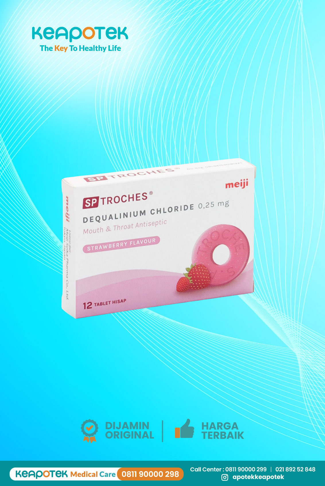 SP Troches Meiji Rasa Strawberry merupakan Obat dengan kandungan Dequalinium klorida untuk mengatasi infeksi pada rongga mulut dan tenggorokan. Tablet ini memiliki rasa manis dan larut dalam mulut berangsur tanpa dikunyah.