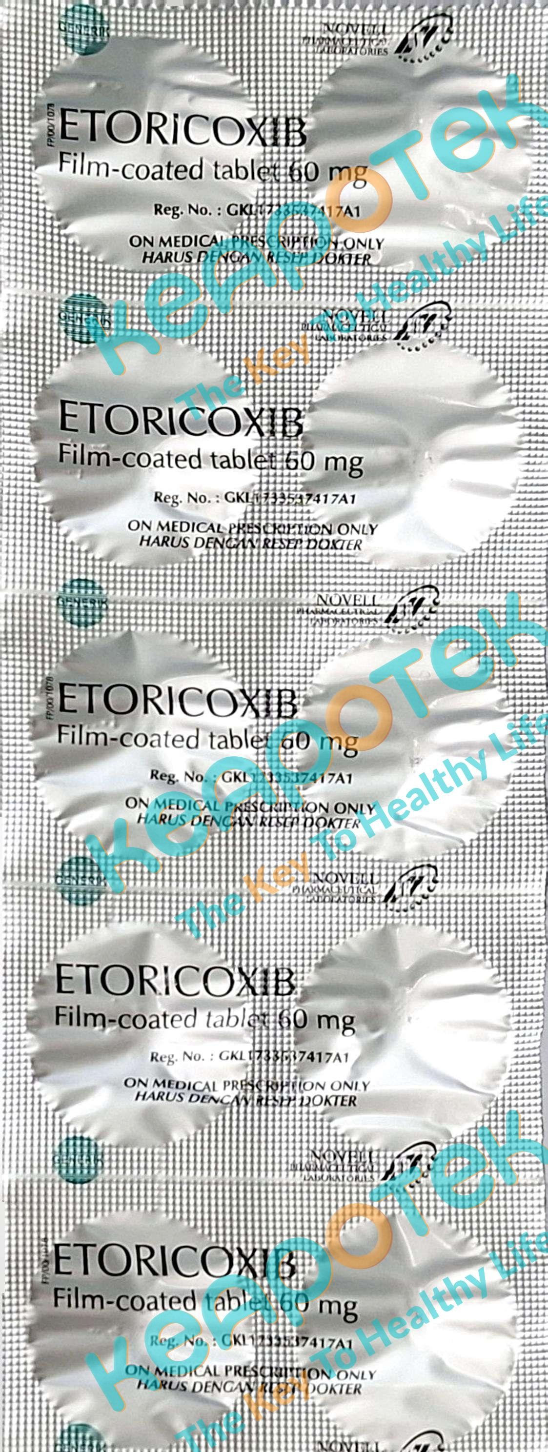 prostaglandin, zat yang menyebabkan rasa sakit dan peradangan di tubuh. Etoricoxib cenderung memiliki efek samping yang lebih sedikit pada lambung