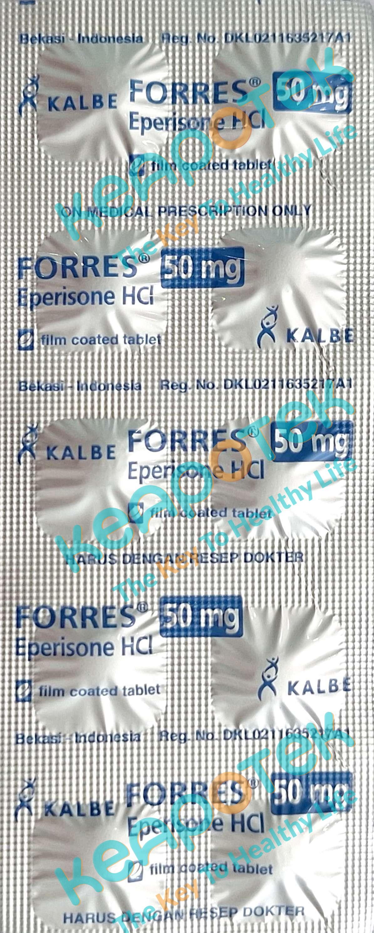 Forres 50 mg merupakan obat dengan kandungan Eperisone HCl 50 mg yang digunakan untuk meringankan kejang
