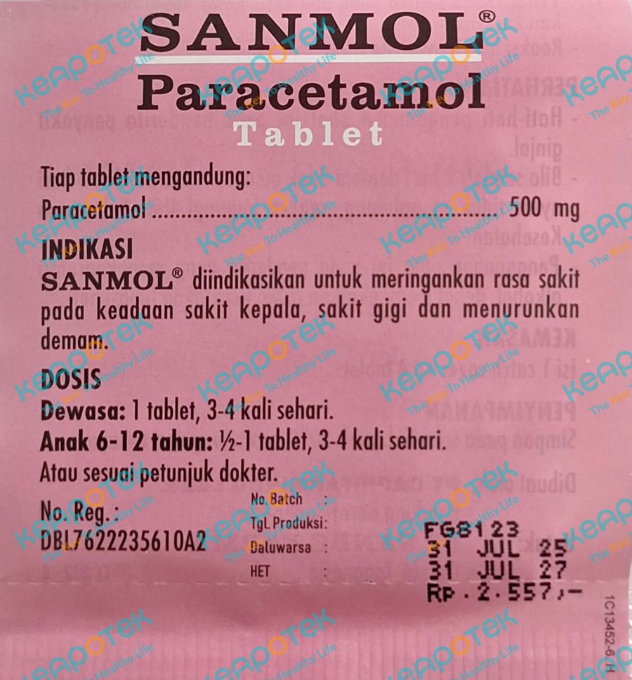 Sanmol tablet merupakan obat tablet dengan kandungan Paracetamol 500 mg yang digunakan untuk