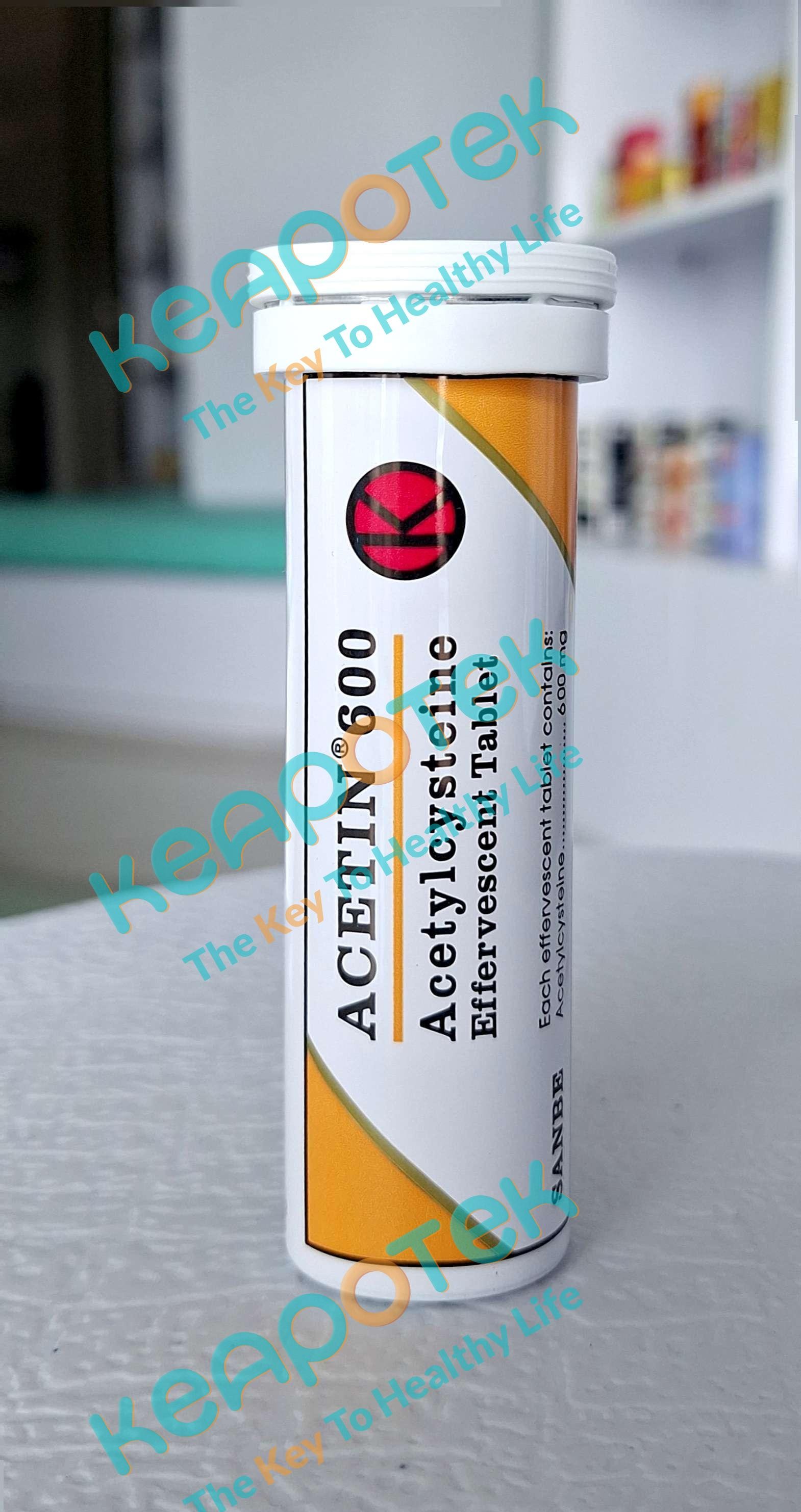 Acetin 600 mg memiliki kandungan zat aktif acetylcysteine 600 mg digunakan untuk pengobatan saluran pernafasan yang ditandai dengan hipersekresi yang tebal dan kental, seperti: bronkitis akut, bronkitis kronis dan akut berulang, pulmonari emfisema, mukovisidosis, dan bronkiektasis. Acetylcysteine mempunyai aktivitas fluidifikasi yang kuat terhadap sekresi mukus dan mukopurulen dengan jalan depolimerisasi dari kompleks asam mukoprotein dan asam nukleat penyebab viskositas dari komponen-komponen mukoid dan purulenta dari sputum dan sekresi-sekresi lainnya, serta berefek sebagai zat anti flogistik dan mempercepat regenerasi mukosa.