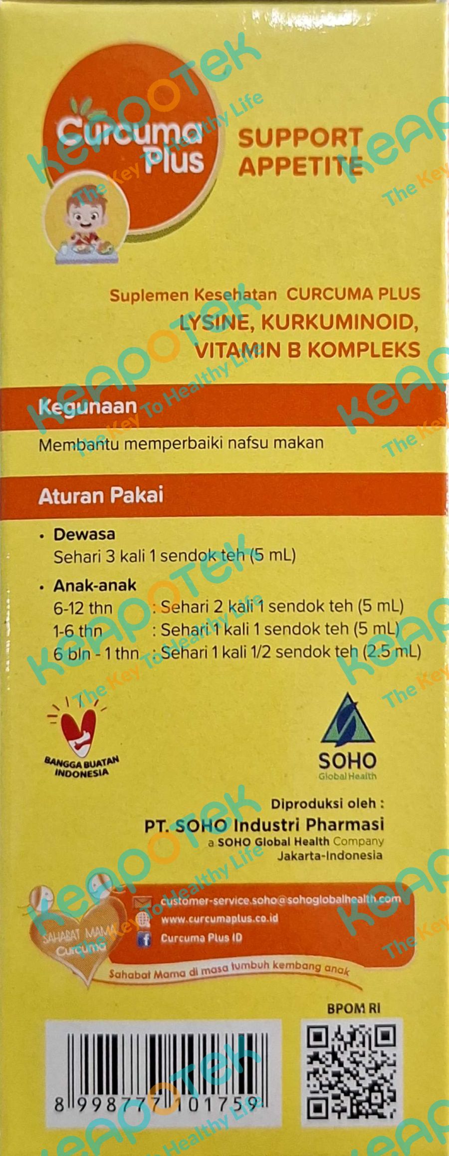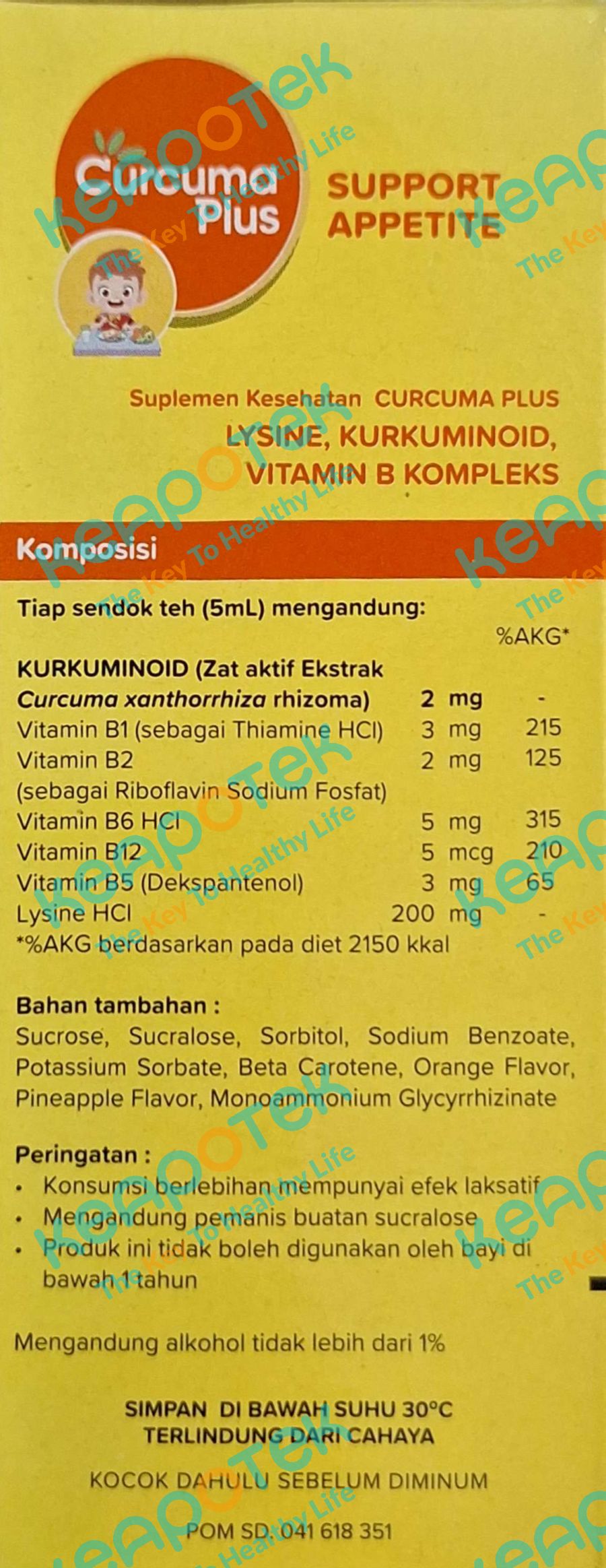 Curcuma Plus Support Appetite merupakan suplemen yang mengandung lysine, kurkuminoid, vitamin b kompleks dan beta karoten 10 % yang berguna untuk membantu memperbaiki nafsu makan pada masa pertumbuhan anak.