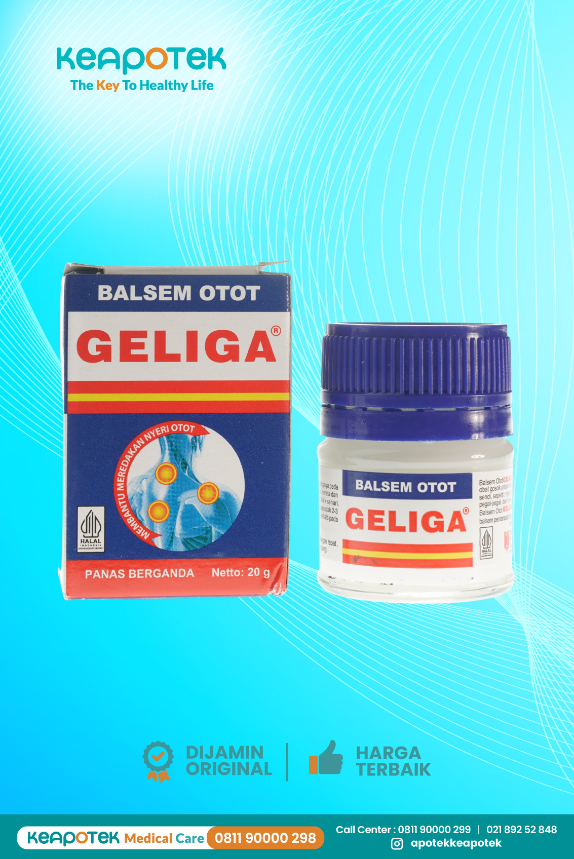 Balsem Otot Geliga 40 gr mengandung Methyl salicylate 30%, peppermint oil 18.5%, white champore oil 12.5%, dan basis hingga 100% digunakan untuk obat gosok yang membantu meredakan nyeri otot dan sendi seperti nyeri akibat pukulan/memar, keseleo dan nyeri otot punggung.