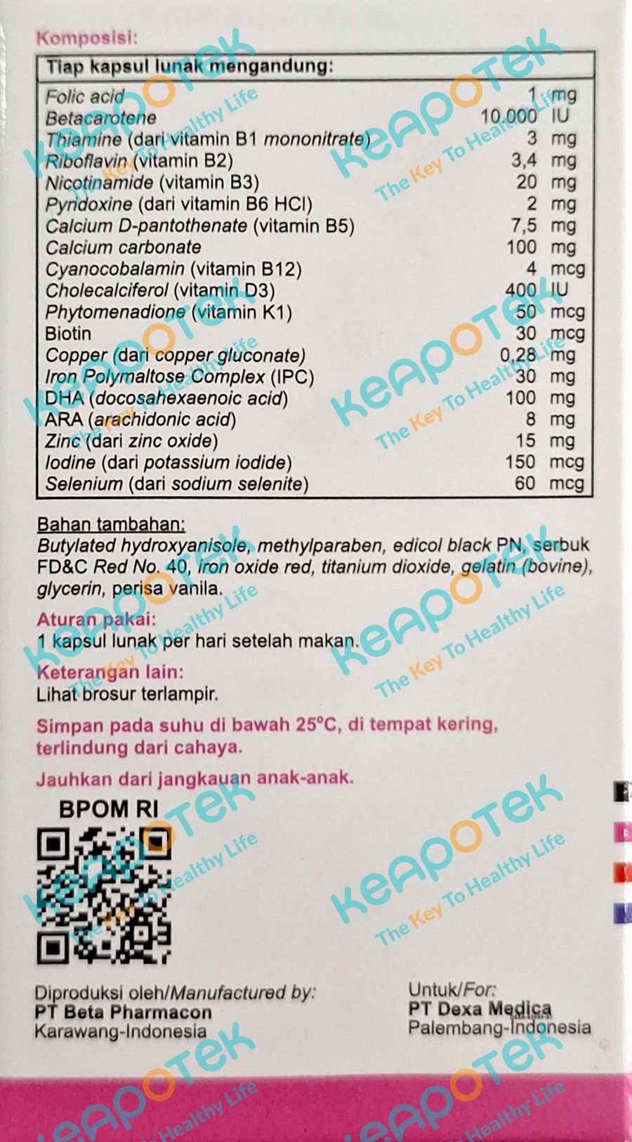 Dosis: 1 kali sehari 1 kapsul lunak. Aturan Pakai: Dikonsumsi sesudah makan.