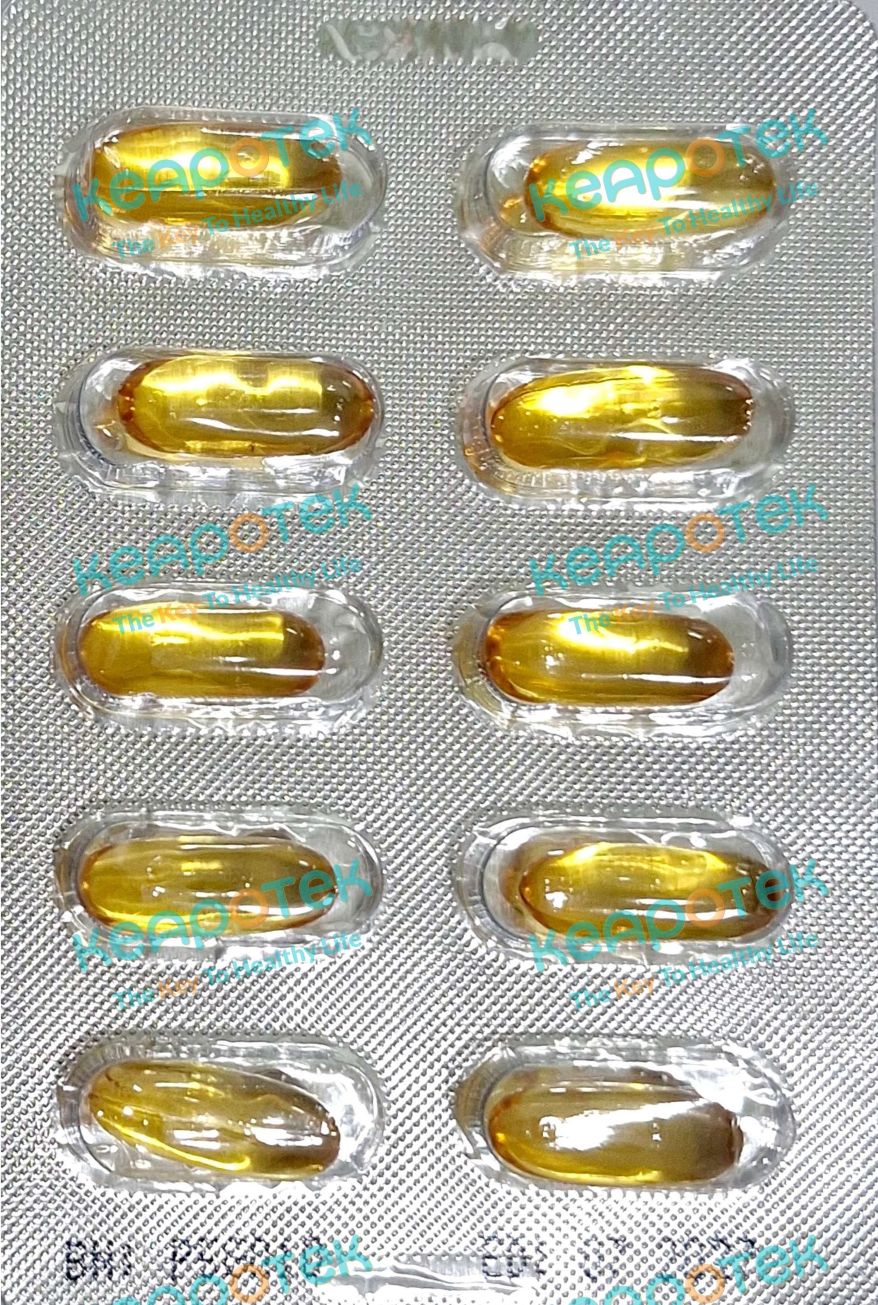 Dosis: Sehari 2 kali 1 kapsul lunak, pada pagi hari dan malam hari. Aturan pakai: Dikonsumsi sebelum atau sesudah makan.